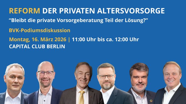 Dazu wird der BVK eine Podiumsdiskussion mit ausgewiesenen Kennern der Altersvorsorgereform in Berlin durchführen, am